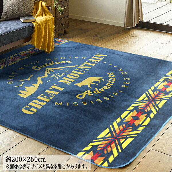 オルテガ柄ラグ マウンテン 約200×250cm【約3畳】ホットカーペットカバー アウトドア柄 ネイティブ柄 おしゃれ ホットカーペット対応 フローリング