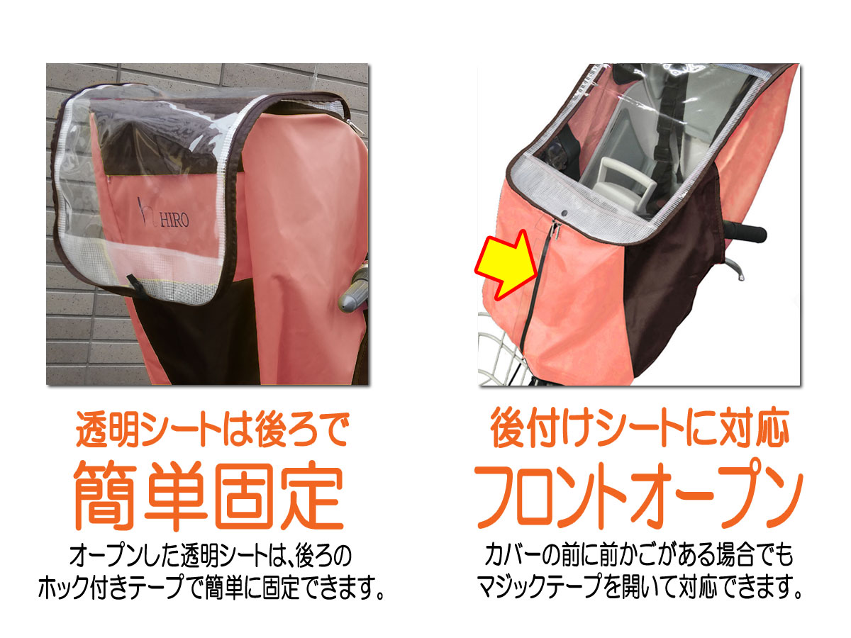 ) ■前方のかご接続部分および、サイドのハンドル出し部分はマジックテープで閉じる構造になっておりますが、 風を伴った雨の場合など、テープの隙間から少々水が入り込むことも考えられますので、予めご了承ください。